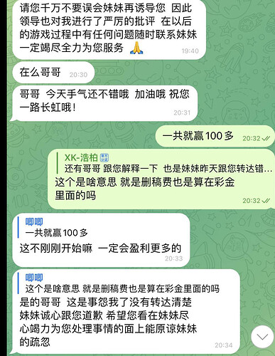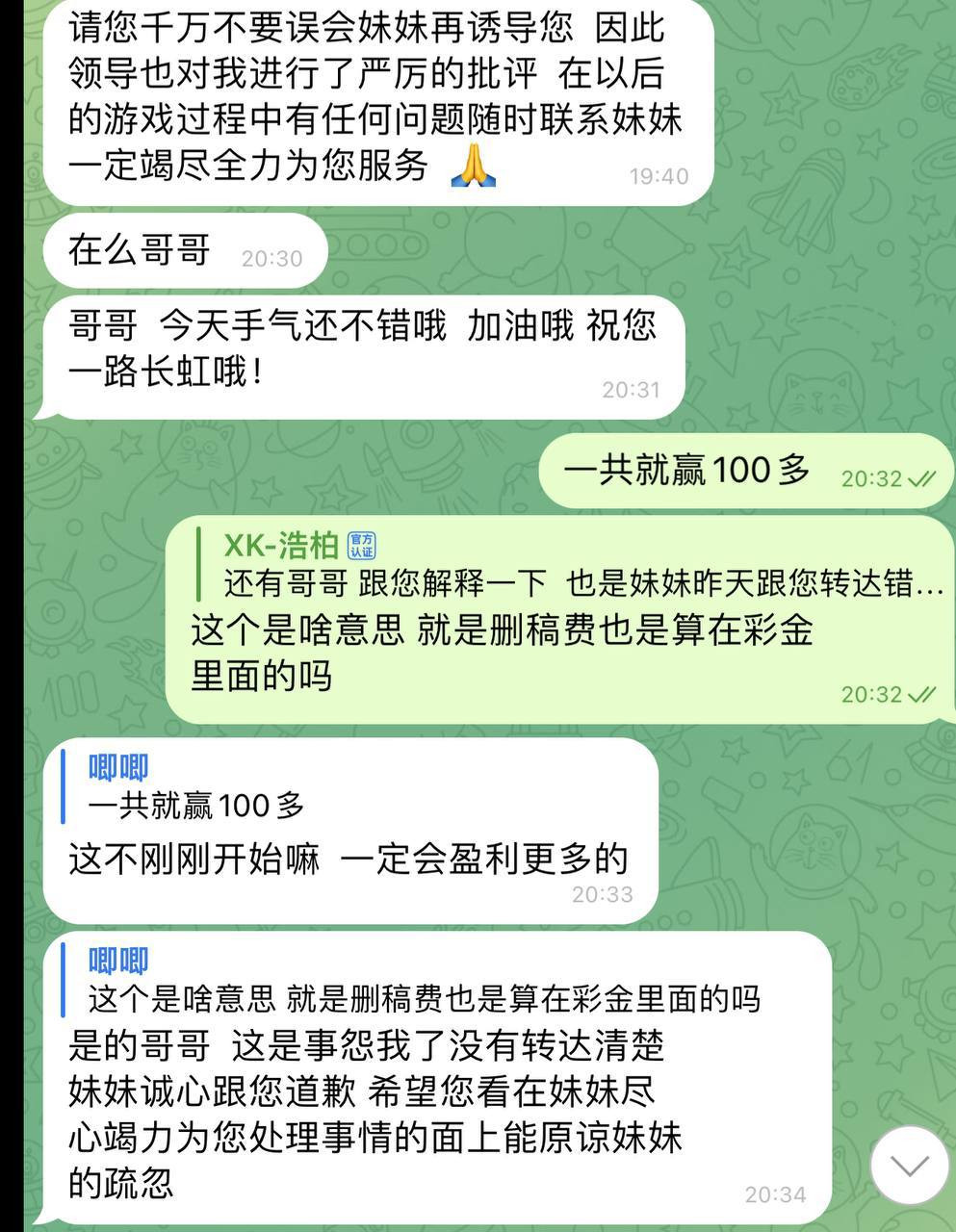 因前面平台黑款,提现没收到款就提现成功,后续查询确实没有出款成功,给我进行了补回,然后平台客服一直要求我删除曝光帖,并且承诺报销删稿费用还会给我个彩金补偿,结果我自费删除后,平台客服又说传达错误,只给了个补偿彩金,结果补偿的还没有删稿费多,那为什么没删除期间多次对我说报销费用?结果删除完就说转达错误?你们这客服骗删除有意思吗?