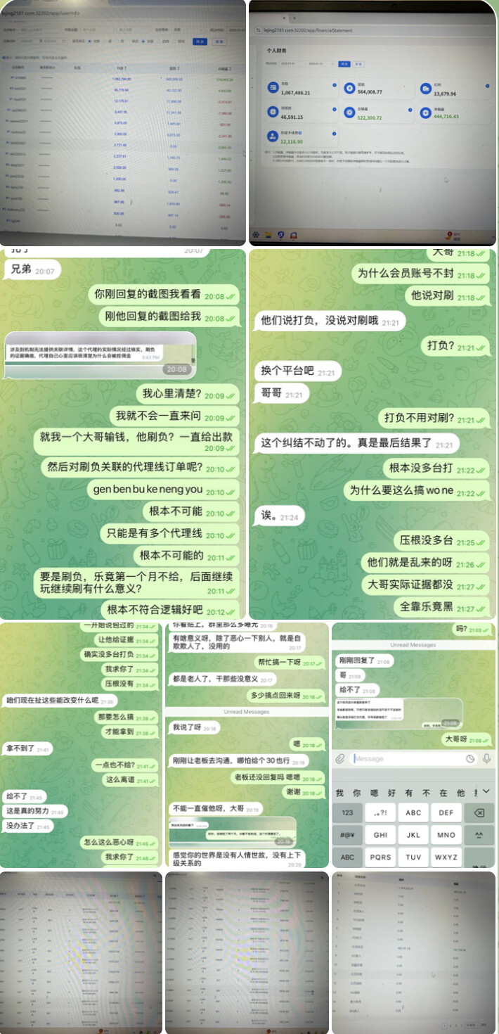 乐竞体育就是以前的博鱼体育改名而来 想到博鱼是BOB旗下的也不会黑, 就在12月份在乐竞做了代理,当月有9万多净输赢 不给佣金 说1月份多多发展玩家 下个月肯定能过。